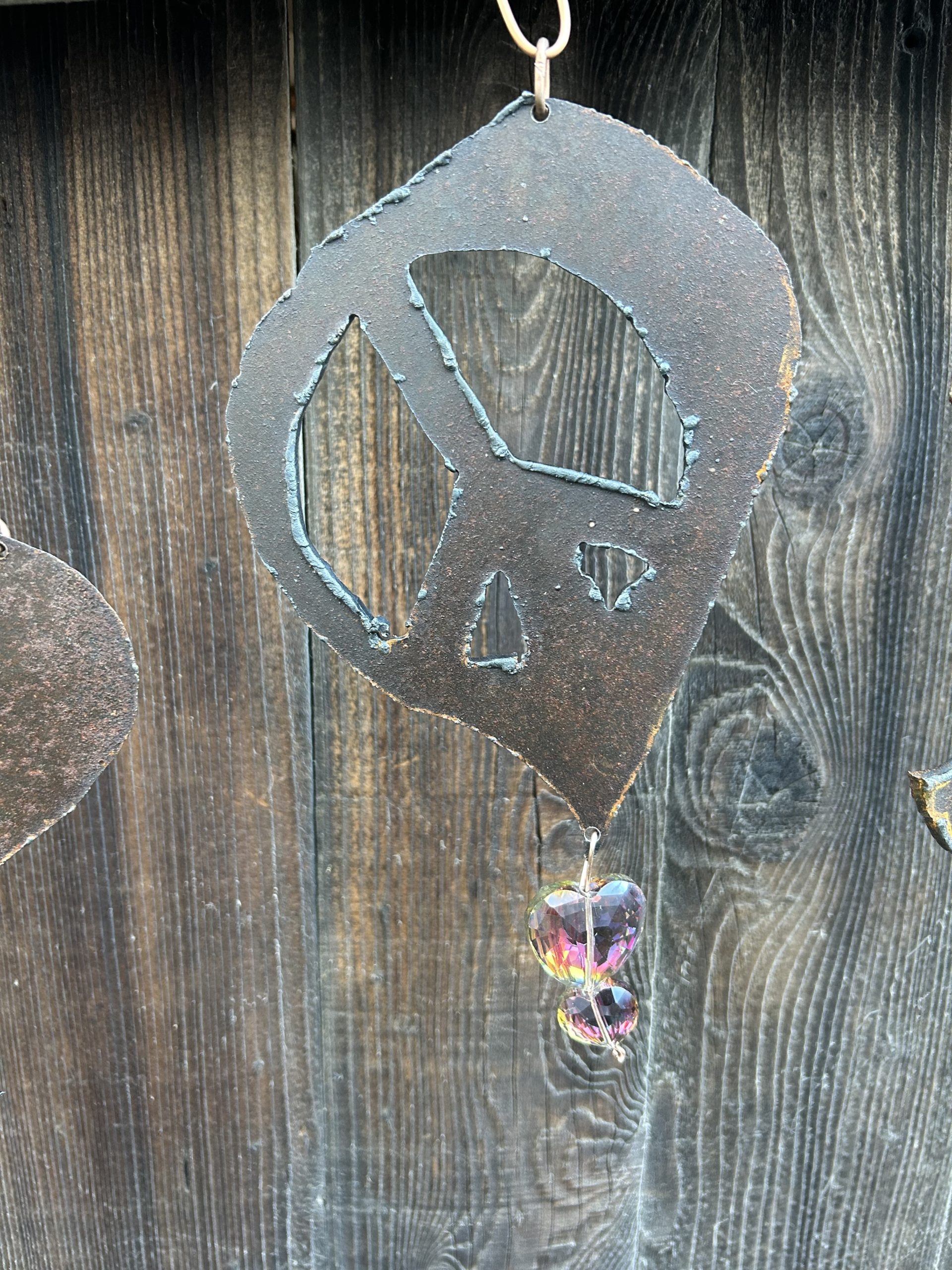 Hang this piece of Metal Art inside and outside and get rainbows from the prisms when they are touched by the sun
